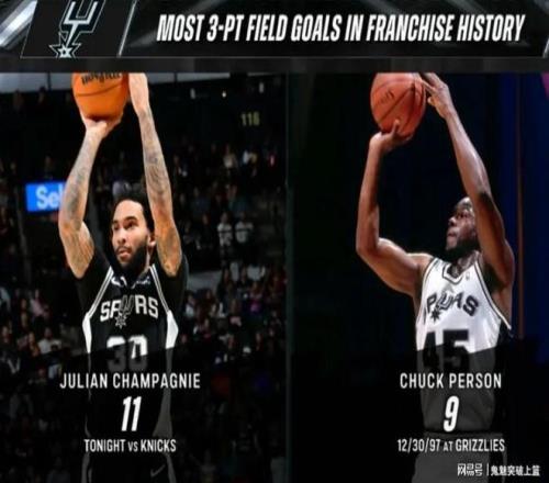 此役,首发出战36分10秒的尚帕尼大发神威,全场17投11中,三分17中11,3罚3中,狂轰36分6篮板1盖帽,正负值+27冠绝全场!其中,11记三分刷新马刺队史纪录,此前纪录为查克珀森所保持的9记三分。