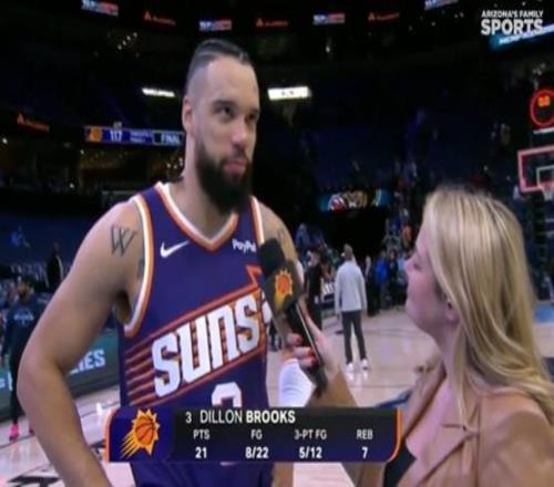 本场比赛是太阳前锋狄龙-布鲁克斯重返孟菲斯面对老东家的一战,赛后接受采访时,他透露了一个在比赛中的趣闻,狄龙说道:“小贾伦说我丑,但实际上他比我还丑。”